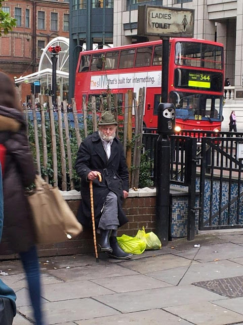 I got off the tube at Liverpool St. to be greeted by a man asking for 50p, then simultaneously spotted a street-style blogger wandering round, looking for a victim.